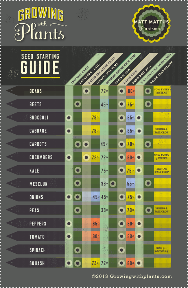 Posted on April 13, 2014April 16, 2014 by UOGEASY TO UNDERSTAND Seed Starting Guide This is by far the easiest chart to understand. All the information you need to know to successfully start seeds is right here. Click the image to enlarge.