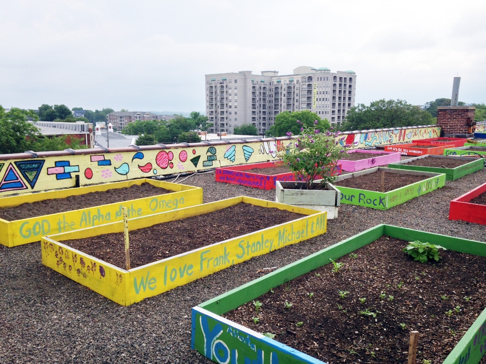 Munchies.vice.com also goes on to say that, “with 95,000 square feet, the Metro Atlanta Task Force for the Homeless is the largest shelter space in the southeastern United States. The garden of 80 colorfully painted raised beds atop the four-story concrete building at the corner of Peachtree and Pine streets provides rich work experience (including urban farming certification and licensing), therapy, and fresh, healthy food for the more than 400 men, women, and children who reside there. These beds, built and maintained by residents, have already raised what reads like a Whole Foods shopping list: small crops of organic tender lettuces, collard greens, kale, chard, carrots, strawberries, radishes, squash, watermelon, zucchini, bell peppers, tomatoes, green beans, and more.”