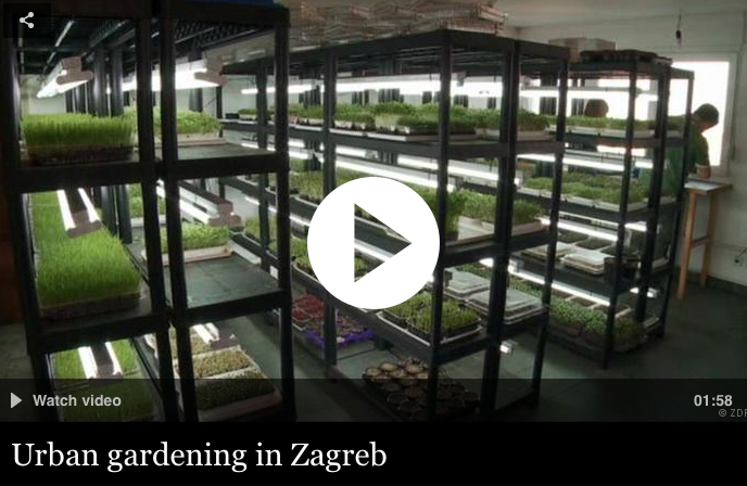 Posted on April 24, 2017 by UOGUrban Gardening 17 Stories High in Zagreb “Urban gardening is a growing trend throughout Europe. In the Croatian capital Zagreb, Marijan Butkovic grows microgreens like cress, arugula and cilantro in a highrise. He even delivers his produce to 20 restaurants.” Watch the Video HERE