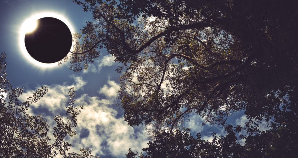 When a solar eclipse occurs, the Sun, Moon, and Earth are in precise alignment; so precise that the Moon will cover the entire disc of the Sun and completely blot out its rays (for those in the path of totality). Solar eclipses not only mimic nighttime by turning the sky dark, they also bring evening’s cooler air temperatures.