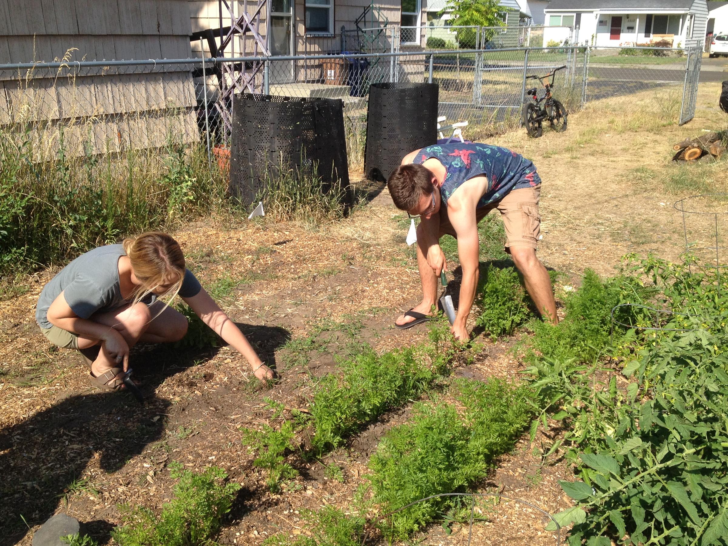 Autumn and Christian are two of the urban gardening volunteers working in northwest Spokane plots for the group Growing Neighbors.