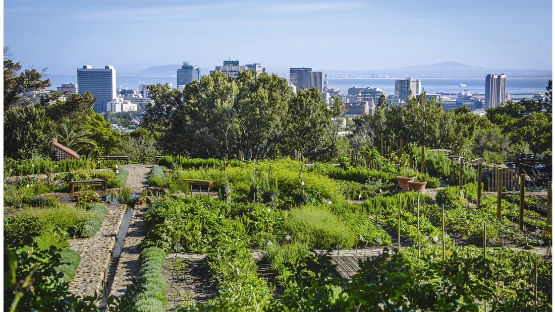 The contrast between the cityscape and the greenery is often striking. Pictured here: Oranjezicht City Farm, Cape Town, South Africa. – Courtesy Coco VanOppens Photo/Phaidon.com