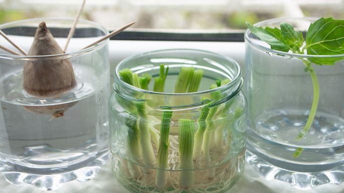 That’s because you can start an indoor garden from your kitchen leftovers. No soil required!