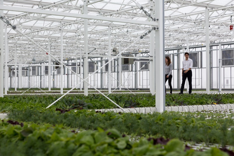 “Canadians have grown accustomed to seeing Prime Minister Justin Trudeau pop up in unlikely photos, sometimes shirtless or in athletic gear. But Trudeau was wearing a suit for a planned photo op when he toured Lufa Farms, a 63,000-square-foot rooftop greenhouse in Montreal, last March. During his visit, Trudeau took a moment to harvest a bag of greens for his family.