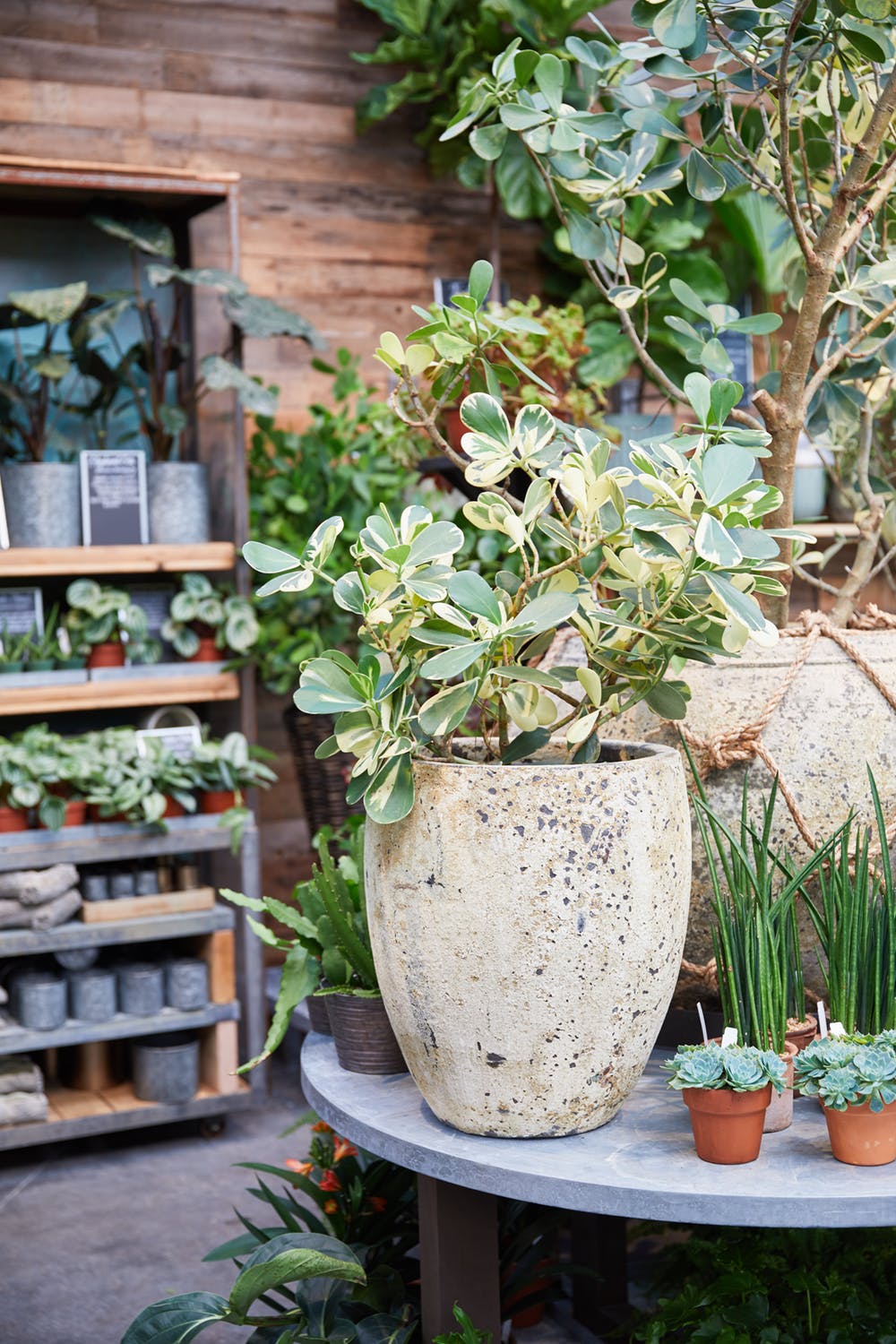 1. Pick hardy plants. Of course, if you don’t have a green thumb to start with, winter can pose a whole other challenge. Use this season to focus on naturally hardy and already well-established plants, rather than deciding now’s the time to try your hand at a new specialty. “Sansevieria is a standby as a truly solid, highly tolerant plant,” Lowrie tells Brit + Co. “[At Terrain], we are liking the narrow shape and natural form of Fernwood Sansevieria, or Sansevieria Moonshine, for its brighter, frosty green foliage.”