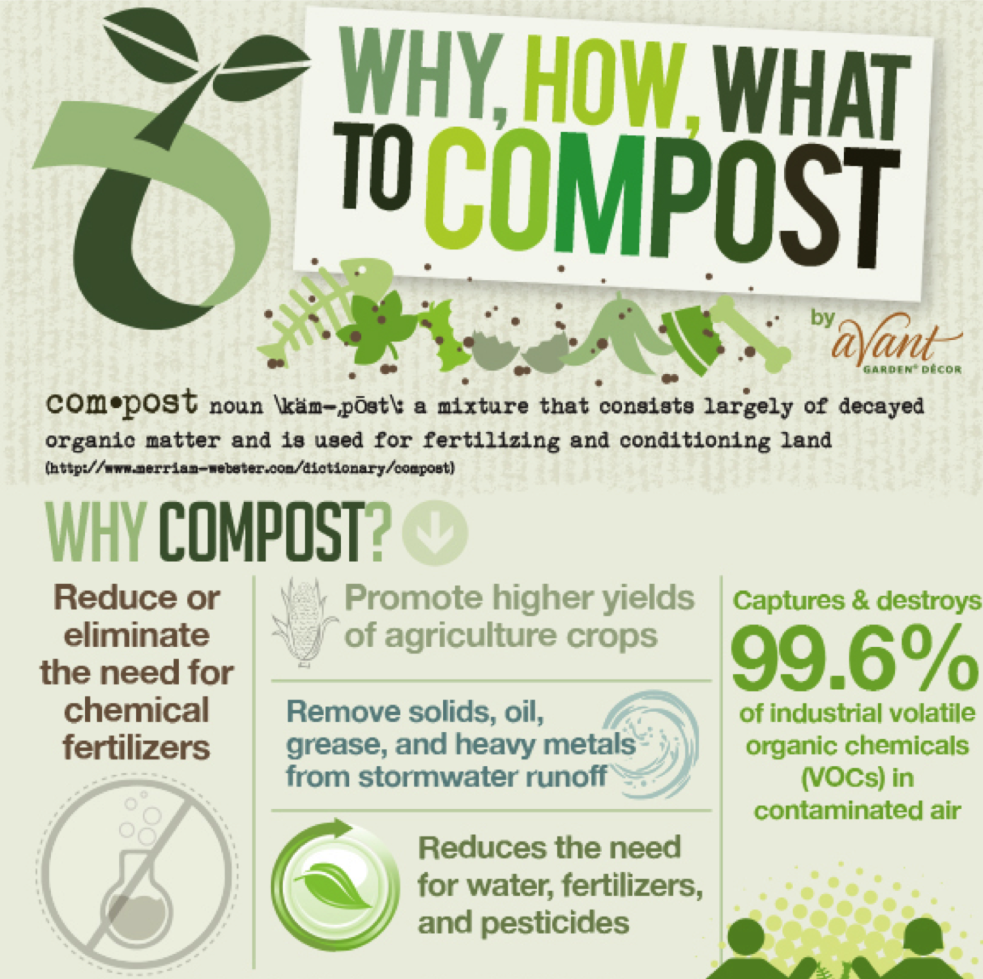 Creating your own compost will save you money and is easy to do! With compost starters like Ringer® Compost Plus available to help organically speed up the process, you can start reaping the benefits of your own compost in no time. Your plants and the environment will thank you.” – This infographic, brought to you by Avant Garden Decor, home of Gardener’s Blue Ribbon® vegetable gardening products, shares intriguing facts regarding home compost production and its benefits.