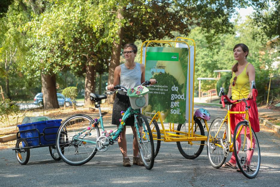 Let Us Compost is a curbside composting service for homes, businesses and events. They started in 2012 with one truck and this year they began picking up by bike. They currently pick up from over 170 homes and businesses. Customers are given a bucket, kitchen pail and biodegradable bags when they sign up and simply place their food waste into the kitchen pail then dump the pail into the bucket when its full. The pail is put on the curb just like a garbage can and it is picked up weekly. Let Us Compost empties it into the trailer, gives the bucket a little refresher spray, and leaves more biodegradable bags made from plants.
