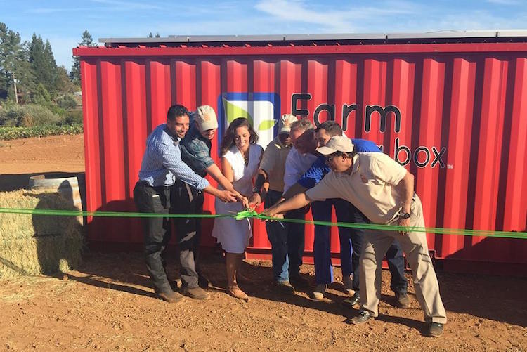 Farm from a Box is a modified shipping container with a built-in WiFi, irrigation system, solar panels, weather tracking devices, batteries and more. It also contains seedlings, farming equipment and a training program to provide communities with the tools the need to feed themselves. Photo credit: Farm from a Box